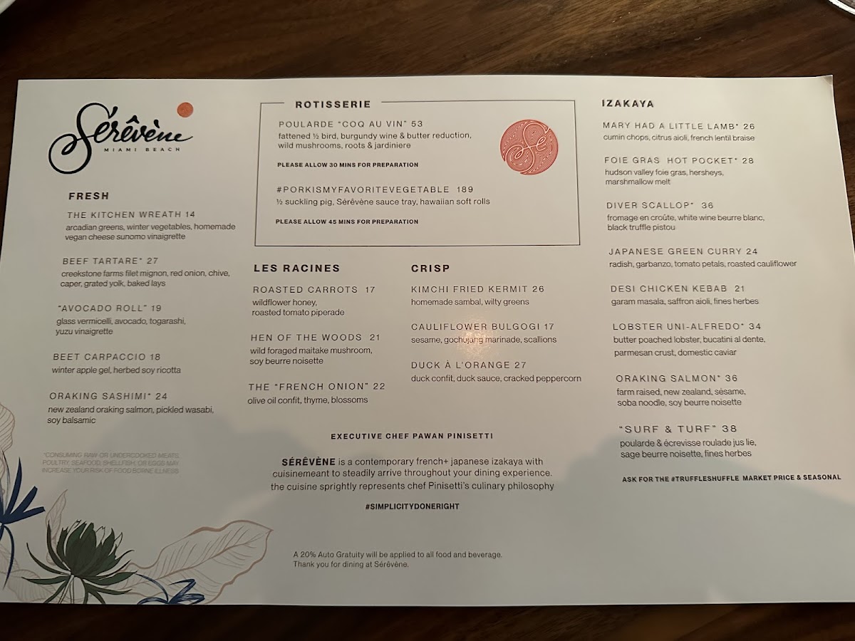 With exceptional service and a vibrant ambiance, Sérêvène redefines fine dining, making it a must-visit for those seeking a memorable gastronomic journey in Miami.